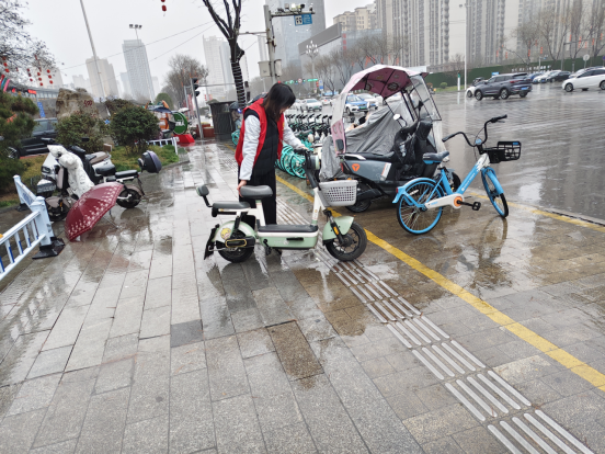 10、3月13日,谐路社区以“巡查+整治+引导”三位一体模式推进重点点位治理,志愿者化身“文明秩序员”,深入商圈及主干道重点区域,不仅对乱停乱放的电动车、共享单车开展归位整理,更现场引导行人遵守交通规则、规范出行行为,以精细化巡查与人性化引导,让文明秩序成为辖区重点点位的“风景线”。