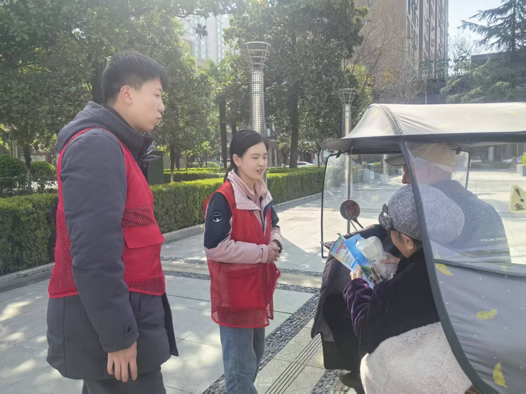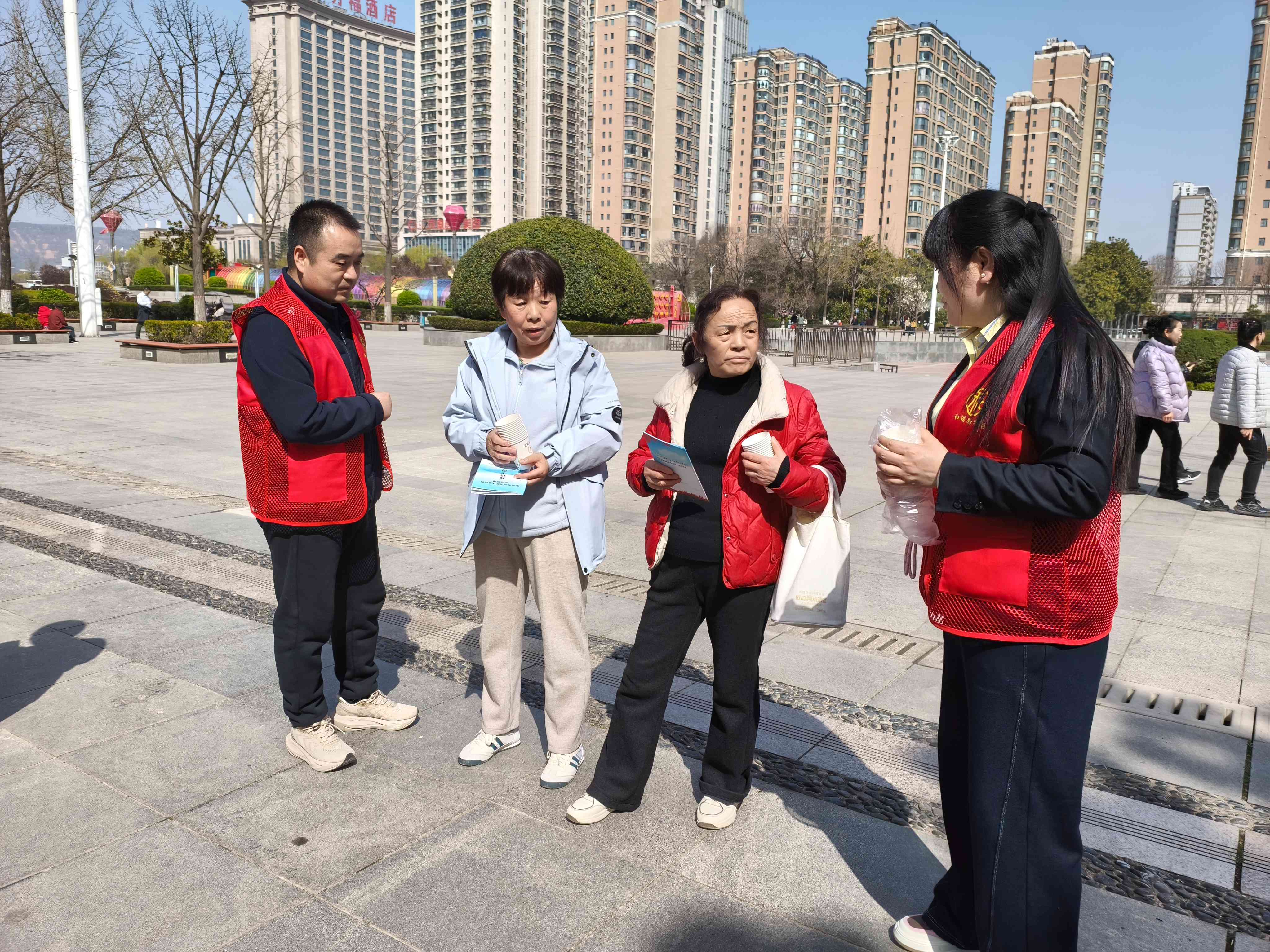 在高新广场,宣传活动吸引了众多休闲娱乐的居民驻足参与。志愿者们耐心解答居民提出的各类疑问,结合身边真实案例,将生硬的条例条文转化为通俗易懂的语言,让居民清晰知晓文明行为的边界与责任,明白践行文明规范对个人、家庭及社区的重要意义。同时,志愿者们还积极号召居民争做《条例》的宣传者、践行者和监督者,主动带动家人、邻里共同遵守文明公约,携手维护整洁优美、和睦友善的社区环境。
