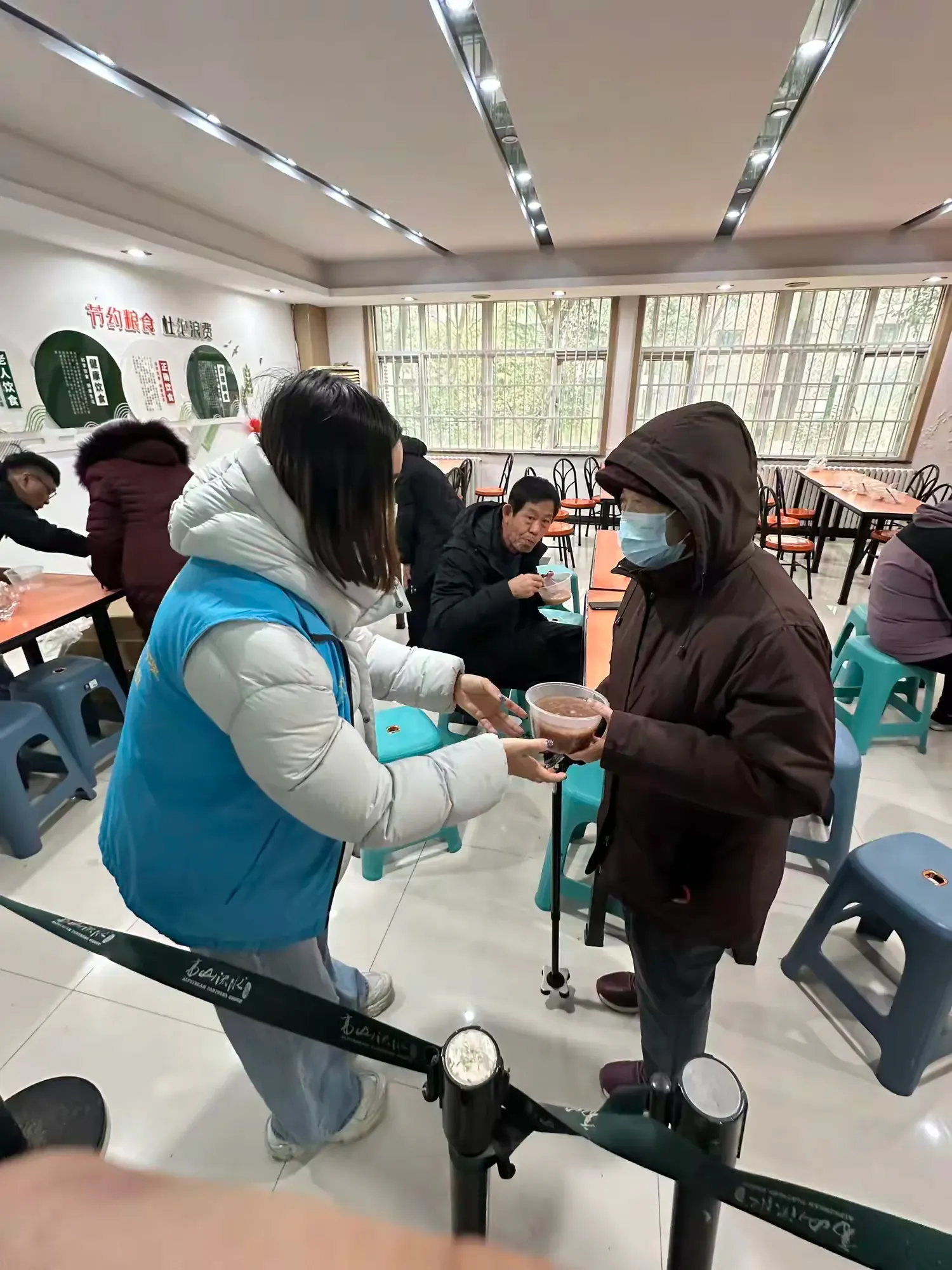 活动现场暖意融融、热闹有序,腊八粥的香甜气息萦绕四周。社区工作人员分工协作,热情地为居民盛粥递碗,动作娴熟、服务周到。辖区老党员、老年人、妇女儿童、青年居民等不同群体纷纷参与其中,大家手捧热粥,或围坐交流、或驻足畅谈,软糯香甜的腊八粥在舌尖化开,温暖直抵心间。