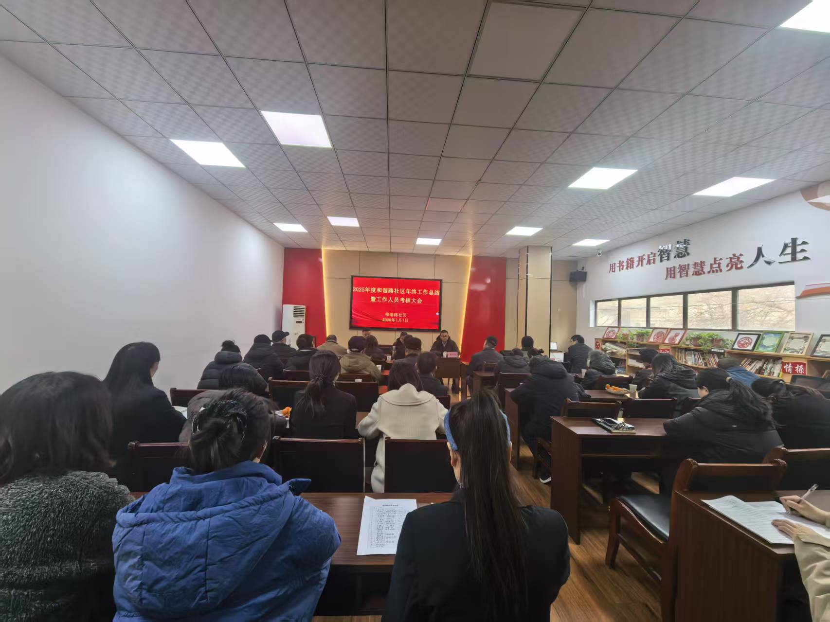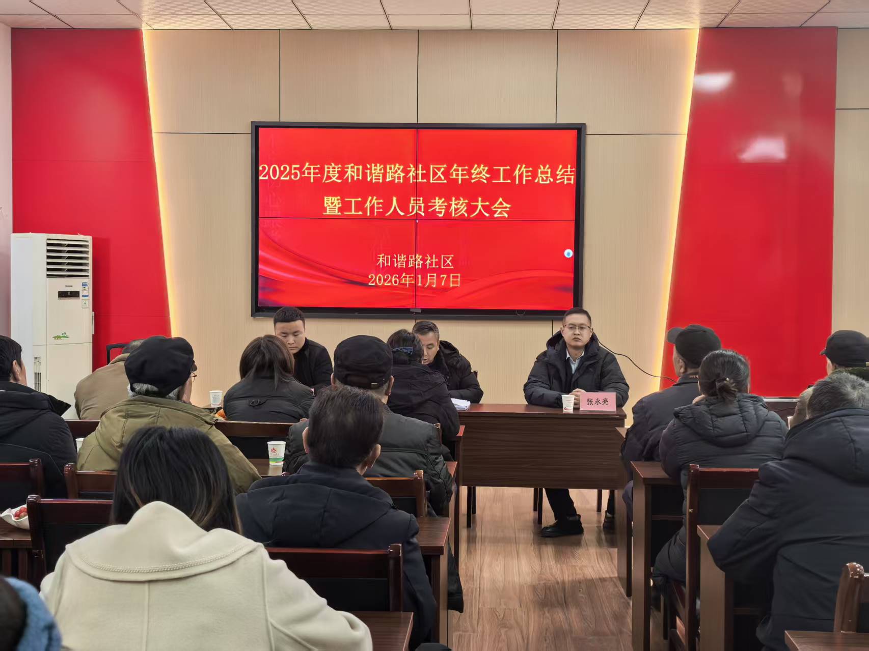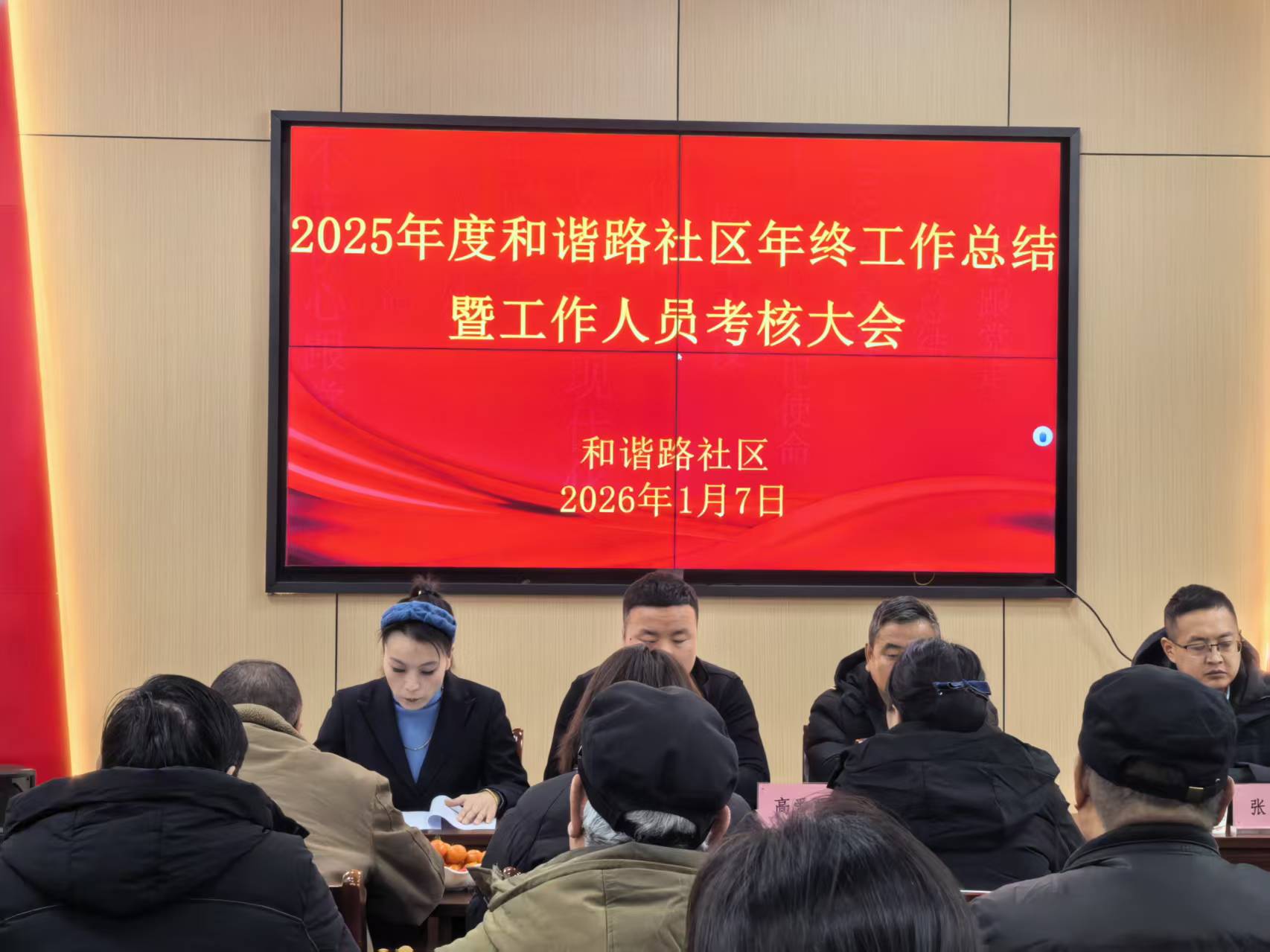 为全面梳理2025年社区工作成效,科学评价工作人员履职表现,明确2026年工作方向,近日,和谐路社区隆重召开2025年度年终工作总结暨工作人员年度考核大会。会议由社区镇领导主持、社区书记及全体工作人员及居民代表参加,共同为社区发展凝心聚力。